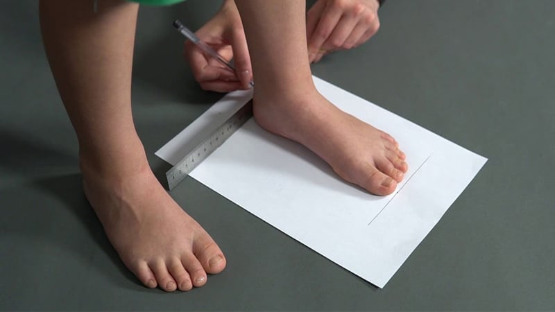 Bước 2: Dùng bút đánh dấu điểm đầu (ngón dài nhất) và điểm cuối (gót chân).