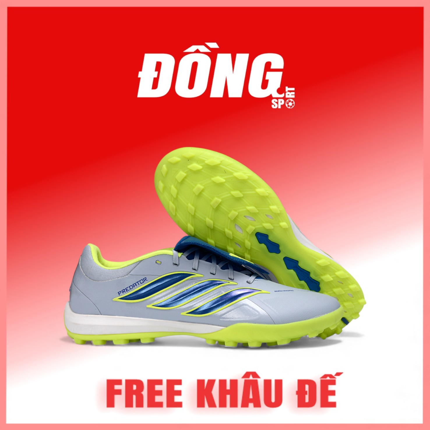 Giày Bóng Đá Adidas Predator 26 Elite Xám Xanh Lá Lưỡi Gà Lật TF