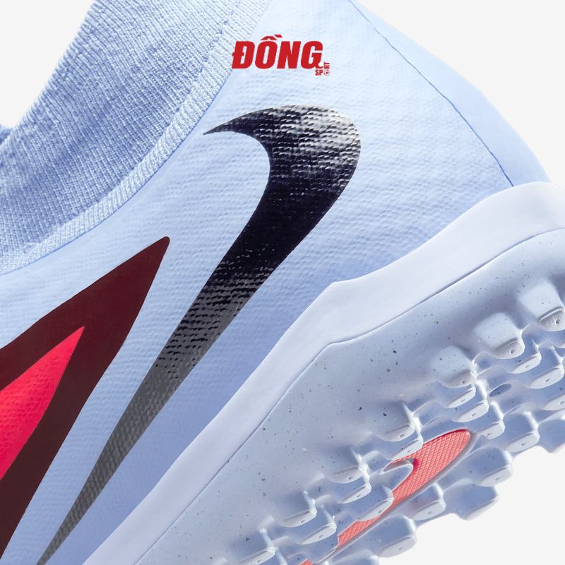 Đế giày TF (Turf): Đế ngoài được làm từ cao su chịu mài mòn, với các đinh dăm nhỏ (TF) được bố trí khoa học. Thiết kế này cung cấp độ bám vượt trội trên sân cỏ nhân tạo, giúp người chơi dễ dàng tăng tốc, chuyển hướng đột ngột và xoay sở trong không gian hẹp mà không bị trơn trượt. Đế giày còn có một lớp đệm gót, giúp giảm chấn thương và tăng sự thoải mái.