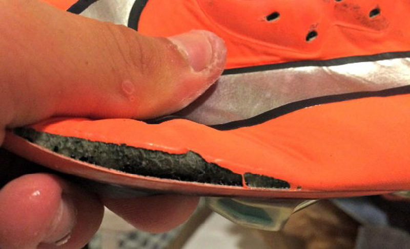 Cầu thủ có thói quen sút mũi hoặc thường xuyên tì mũi giày xuống mặt sân khi xoay trụ rất dễ khiến phần mũi bị hở trước tiên.