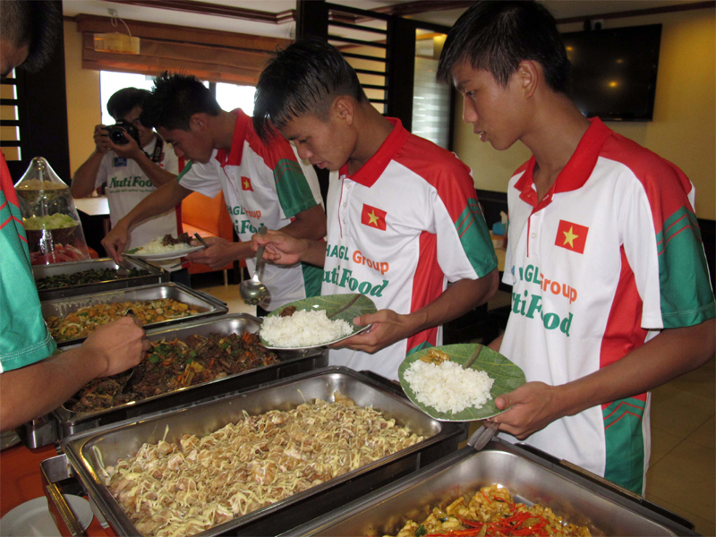 Dinh dưỡng là yếu tố quyết định đến thể lực khi đá bóng. Một chế độ ăn hợp lý trước trận đấu sẽ giúp cơ thể có đủ năng lượng để vận động liên tục. Người chơi nên ưu tiên các thực phẩm giàu carbohydrate như cơm, mì hoặc bánh mì để cung cấp năng lượng nhanh. Ngoài ra có thể bổ sung protein từ thịt gà, cá hoặc sữa chua để hỗ trợ cơ bắp.