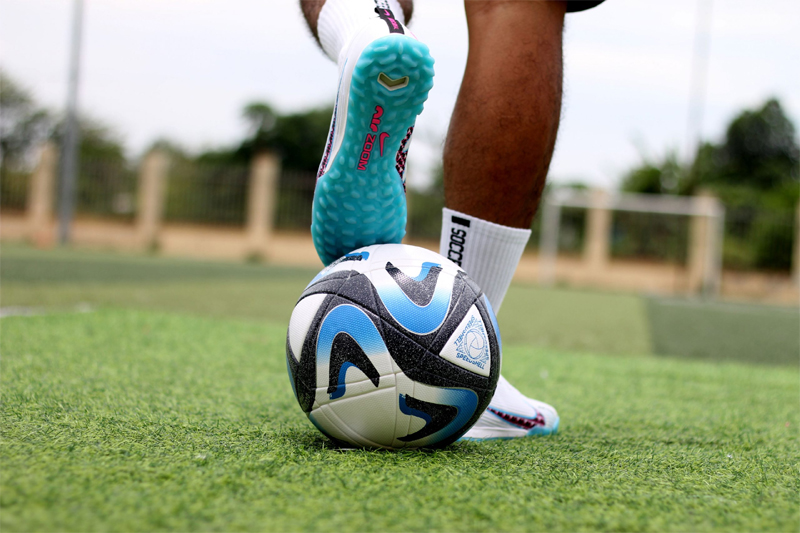 Đối với sân cỏ nhân tạo, đế TF là lựa chọn phù hợp nhất. Thiết kế đinh dăm cao su giúp tăng độ bám và hỗ trợ di chuyển linh hoạt. Đế giày đá bóng cần đủ êm để giảm áp lực lên bàn chân, đặc biệt với người có trọng lượng lớn.